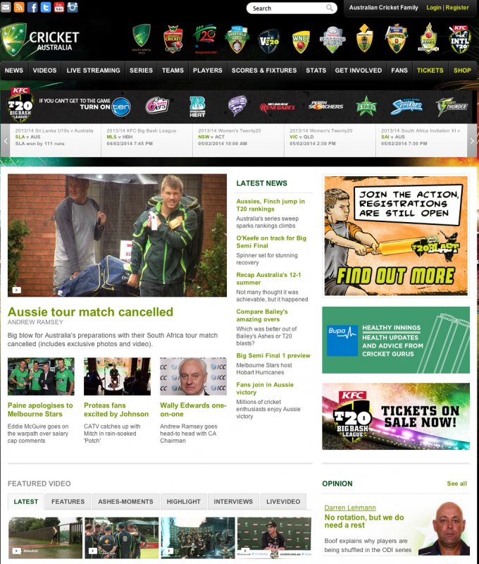 The Cricket Australia website is close to being in ‘the good’ category, however it falls short due to the overpowering homepage needing restructuring and reconsideration of the key user journeys, rather than cramming all of its content in one place. The website’s home page adverts add more complicated visuals to what is an already overcrowded page.