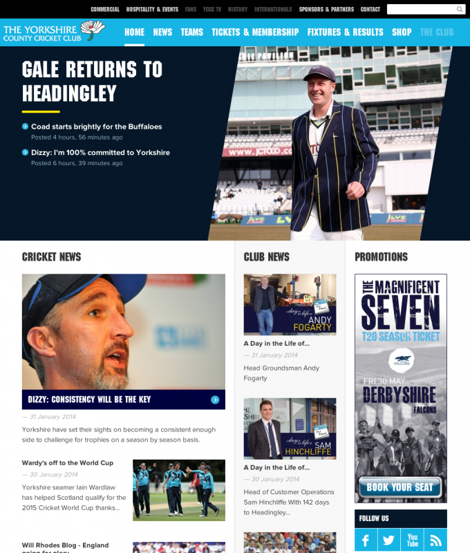 The Yorkshire County Cricket Club website is one of the first fully responsive sports websites, which really sets it apart. Most teams have poor websites that prevent them engaging with users across all devices.