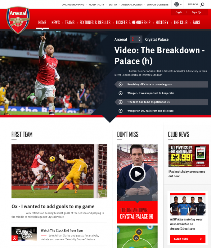 The Arsenal FC website is probably the best in the Premier League. Clean, responsive and intelligently structured the Arsenal website is something for other clubs to live up to (Manchester United take stock).