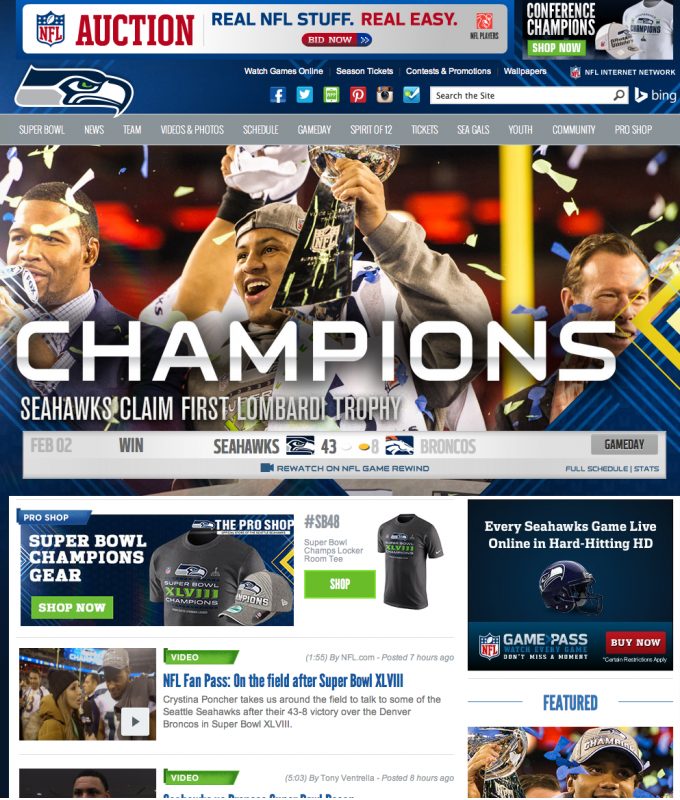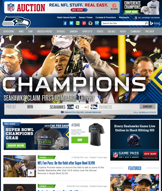 ‘Flat’ design has taken over the digital design world over the past twelve months. Web design is having to incorporate both desktop and mobile users, and the Seattle Seahawks’ mobile website does this really well.