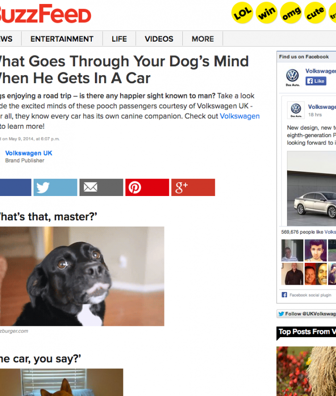 Take Volkswagen for example, they’ve embraced Buzzfeed with open arms creating content such as “12 Stages Of Your Relationship With Your Car” and “14 Things Dads Get Abnormally Excited About”. Whilst this may not be too relevant to what Volkswagen actually sell, they’ve received a vast amount of shares and likes, increasing their authority and trust with users. They’ve moved beyond using generic advertising drivel, and are sharing interesting and engaging content intertwined with their overall marketing strategy.